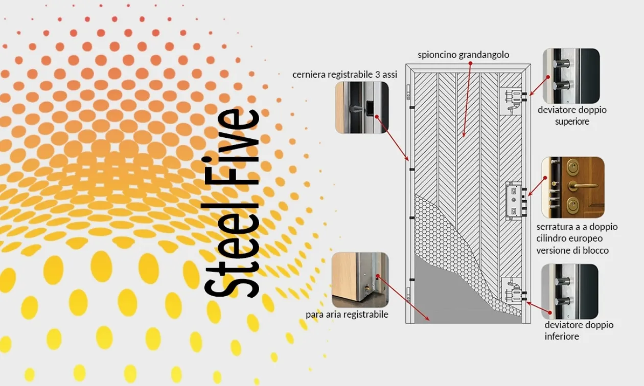 Porta blindata con serratura doppio cilindro Steel Five di Steel Project